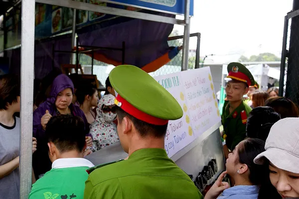 Hàng trăm người bức xúc vì đến xếp hàng tham dự hội chợ container nhưng vừa mở cửa được một lúc thì bị lực lượng Công an đến phong toả và yêu cầu tháo gỡ vì chưa có giấy phép.