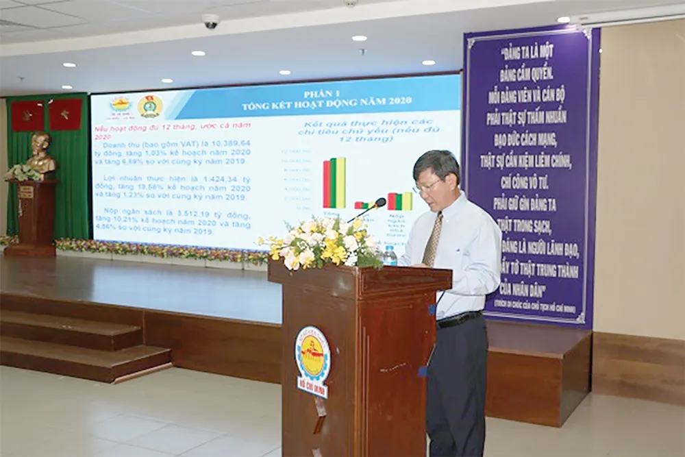 Hội nghị cũng đã được nghe các báo cáo trình tại Hội nghị và nghe đồng chí Đỗ Quang Vinh, Tổng Giám đốc công ty trình bày Báo cáo đánh giá kết quả thực hiện nhiệm vụ năm 2020 và phương hướng nhiệm vụ năm 2021 của công ty. Năm 2020, dịch bệnh Covid-19 trong nước và trên thế giới diễn biến phức tạp, ảnh hưởng đến hoạt động sản xuất kinh doanh của công ty. Tuy nhiên, được sự quan tâm, chỉ đạo sâu sát, kịp thời của Ban lãnh đạo và sự nỗ lực, phấn đấu của tập thể CBNV, NLĐ. Công ty đã khắc phục khó khăn, hoàn thành nhiệm vụ, các chỉ tiêu, kế hoạch sản xuất kinh doanh năm 2020 đều đạt, đời sống vật chất, tinh thần của người lao động được chăm lo tốt.