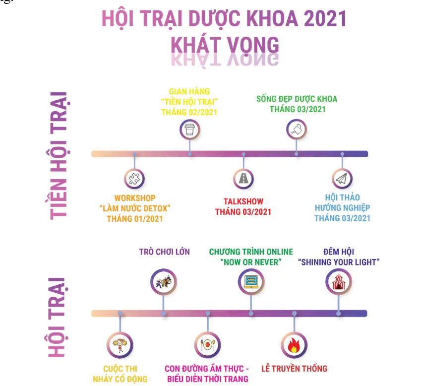 Tiếp nối thành công của các thế hệ trước, đặc biệt, năm nay chào mừng 90 năm ngày thành lập Đoàn Thanh niên Cộng sản Hồ Chí Minh, Hội trại truyền thống Dược Khoa 2021 mang tên “Khát vọng” hứa hẹn sẽ là một sự kiện nổi bật bao gồm các hoạt động phong phú về nội dung, đa dạng về hình thức, xuyên suốt, kéo dài từ đầu năm 2021 đến đêm Hội trại (27/3/2021) với phần lễ hội được đầu tư công phu, thể hiện tài năng và nhiệt huyết của toàn thể sinh viên Dược Khoa.