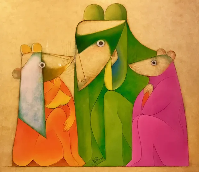 Gia đình nhà chuột - Tranh sơn mài - họa sĩ Thành Chương