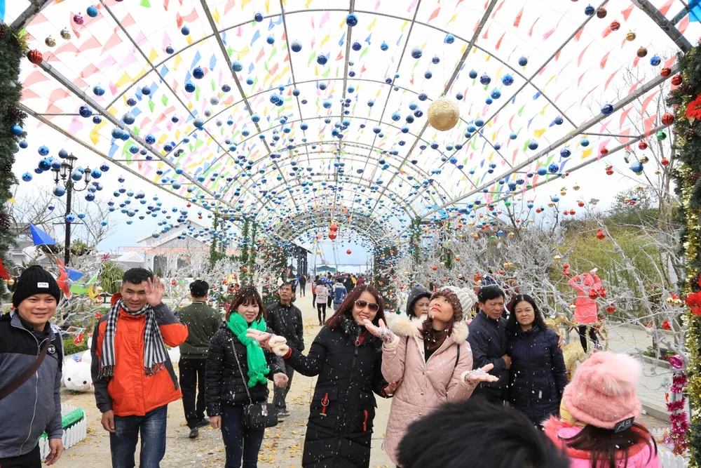 Du khách đến Hội xuân Mở Cổng Trời Fansipan cũng sẽ được hoà trong không khí Tết Tây Bắc độc đáo giữa ngợp ngời sắc hoa, trong tiếng khèn H’Mông da diết.
