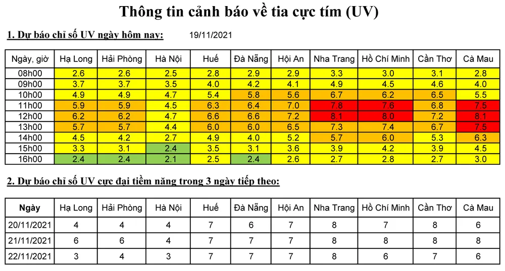 Dự báo chỉ số UV cực đại tiềm năng trong 3 ngày tiếp theo:
