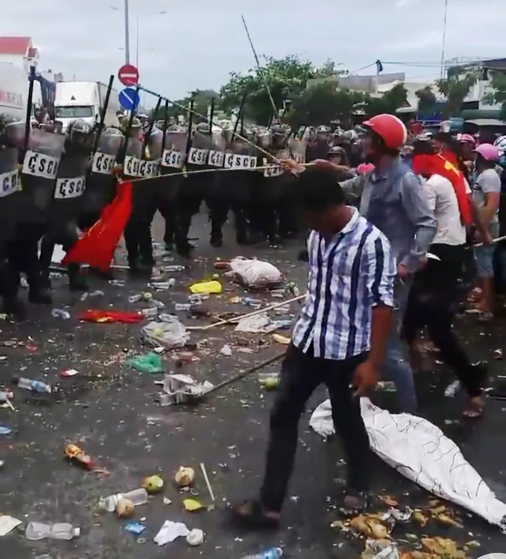 Các đối tượng quá khích tiếp tục đập phá, gây rối, nhiều người còn dùng bom xăng tự chế và gậy tấn công lực lượng công an.