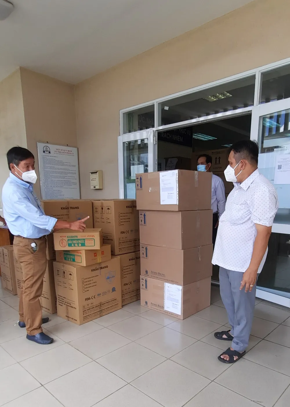 50.000 khẩu trang, 3.000 bộ test nhanh Covid và nhiều hàng hóa thiết yếu của nữ doanh nhân Minh Nguyệt chuyển đến UBND TP Thủ Đức hỗ trợ công nhân, lao động trên địa bàn
