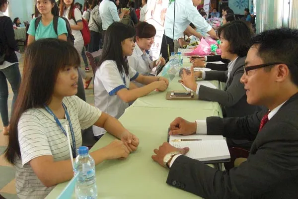 Sàn việc làm này đã thu hút khoảng 1.000 sinh viên đã tốt nghiệp, sinh viên năm cuối thuộc các chuyên ngành đào tạo Quản trị nhân lực, Kế toán, Công tác xã hội, Quản trị kinh doanh, Bảo hiểm,… đến tham quan, đăng ký tuyển dụng, thực tập tại 14 gian hàng của các đơn vị tuyển dung, doanh nghiệp lớn trên địa bàn TPHCM (ảnh).