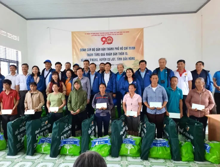 Chiều 28-11, Đoàn cán bộ dân vận tiêu biểu TPHCM do đồng chí Nguyễn Hữu Hiệp, Ủy viên Thường vụ, Trưởng Ban Dân vận Thành ủy TPHCM, làm trưởng đoàn trong chương trình về nguồn tại Đắk Nông, Đắk Lắk đã về Bon U, xã Đắk D’Rong, huyện Cư Jút (tỉnh Đắk Nông) tổ chức các hoạt động chăm lo đồng bào các dân tộc trên địa bàn.