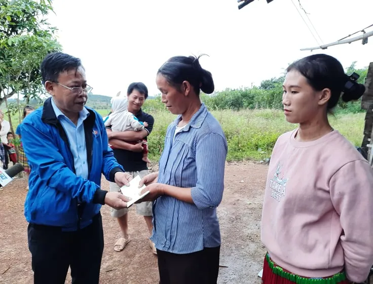 Đồng chí Nguyễn Hữu Hiệp tặng quà hộ dân khó khăn tại thôn 14, xã Đắk D'rong, huyện Cư Jut