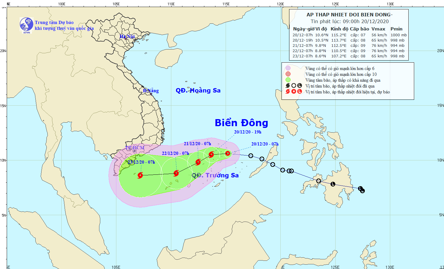 Theo cảnh báo, ngày 21-12, áp thấp nhiệt đới sẽ mạnh lên thành cơn bão số 14 trên Biển Đông, có hướng di chuyển rất khó lường và rủi ro cao cho tàu thuyền do bão tương tác với không khí lạnh, có thể đổi hướng nên tàu thuyền không được chủ quan.