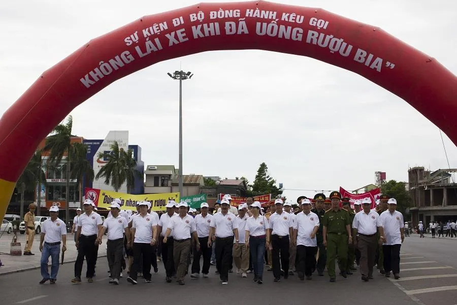 Người dân đi bộ kêu gọi mọi người “Không lái xe khi đã uống rượu bia”