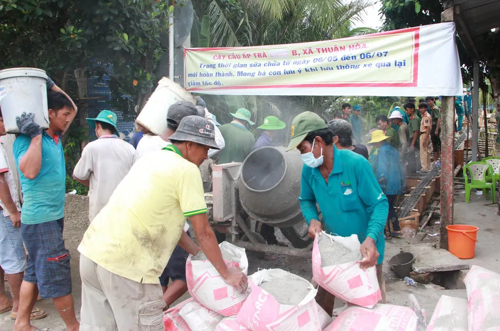 Mỗi khi cầu khởi công xây dựng đều thu hút đông đảo người dân và các lực lượng địa phương cùng chung tay làm