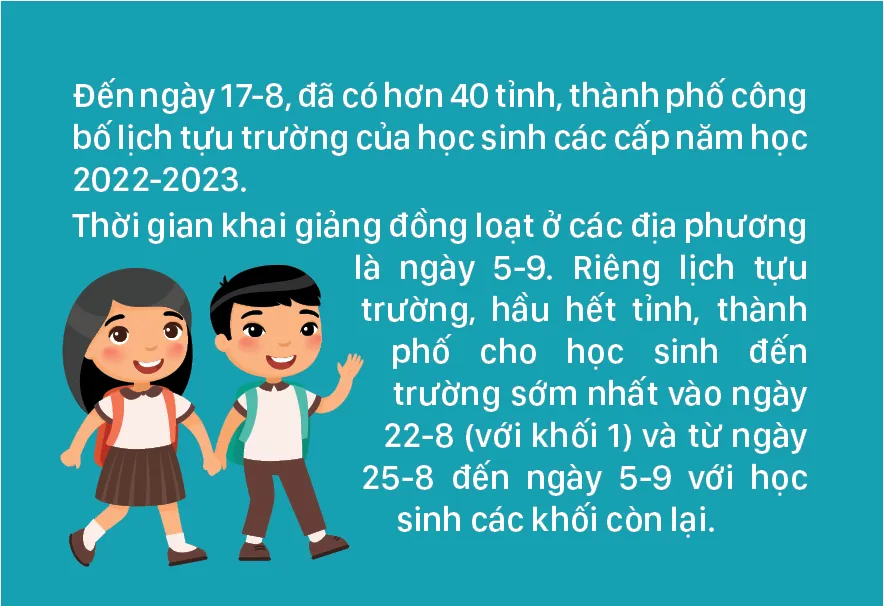 Đến ngày 17-8, đã có hơn 40 tỉnh, thành phố công bố lịch tựu trường của học sinh các cấp năm học 2022-2023.
