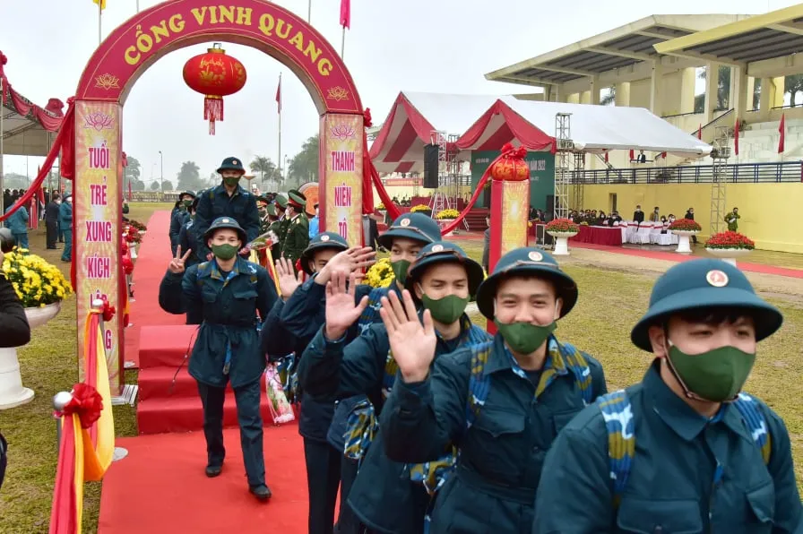 Theo Hội đồng Nghĩa vụ quân sự TP Hà Nội, năm nay, Thủ đô có có hơn 4.300 công dân nhập ngũ, trong đó có 3.500 công dân thực hiện nghĩa vụ quân sự và hơn 800 công dân thực hiện nghĩa vụ công an nhân dân. Đặc biệt, trong số các thanh niên được gọi nhập ngũ đợt này có hơn 1.635 đồng chí là đối tượng Đảng và 760 người có trình độ học vấn từ trung cấp trở lên. Để bảo đảm an toàn phòng chống dịch Covid-19, 100% công dân trong danh sách chốt quân số nhập ngũ đều được tiêm ít nhất 2 mũi vaccine Covid-19 theo quy định. Tại các điểm giao, nhận quân ở 30 quận, huyện, thị xã đã được phun khử khuẩn, bố trí bàn đón tiếp, đo nhiệt độ, phát khẩu trang cho công dân nhập ngũ và người nhà đưa tiễn, quá trình giao nhận quân diễn ra nhanh gọn, bảo đảm các quy định phòng chống dịch. Dưới đây là một số hình ảnh về ngày hội tòng quân diễn ra tại một số quận huyện của Hà Nội: