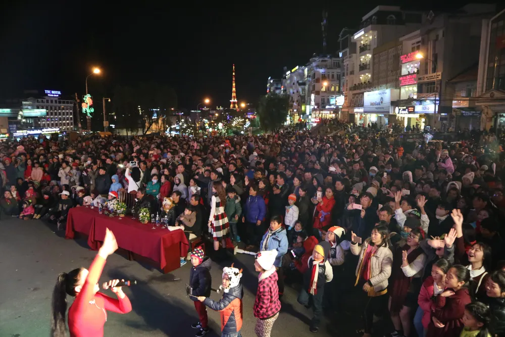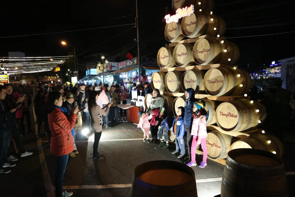 Với 10 khu vực để du khách thưởng thức vang miễn phí, cả khu phố Hòa Bình đã trở thành con đường rượu vang, một dạ tiệc với hàng nghìn người tham dự trong thời tiết giá lạnh của Đà Lạt.