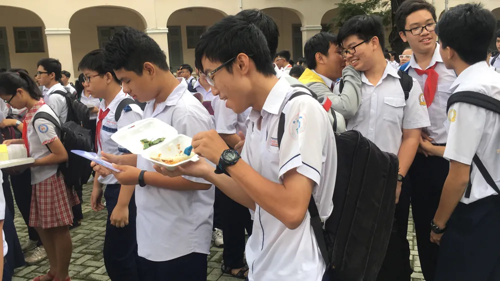 Tại hội đồng thi lớp 10 Trường THPT chuyên Lê Hồng Phong, có 610 thí sinh dự thi. Tại đây, Giám đốc Sở GD-ĐT TPHCM đã ân cần thăm hỏi, động viên các thí sinh bình tĩnh, tự tin để làm bài tốt nhất. So với năm ngoái, kỳ thi năm nay diễn ra sớm hơn gần chục ngày để không gần với kỳ thi THPT Quốc gia từ ngày 22 đến 24-6.
