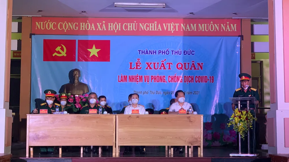 Ngay sau lễ xuất quân, lực lượng này sẽ cùng lực lượng địa phương triển khai các phần việc nhằm đảm bảo hiệu quả công tác siết chặt kỷ luật, kỷ cương trong thực hiện tăng cường giãn cách xã hội và các biện pháp phòng, chống dịch trên địa bàn TP Thủ Đức, nhằm ngăn chặn, kiểm soát được dịch bệnh; đồng thời, đảm bảo cung cấp lương thực thực phẩm, an sinh xã hội cho toàn dân trong những ngày giãn cách.