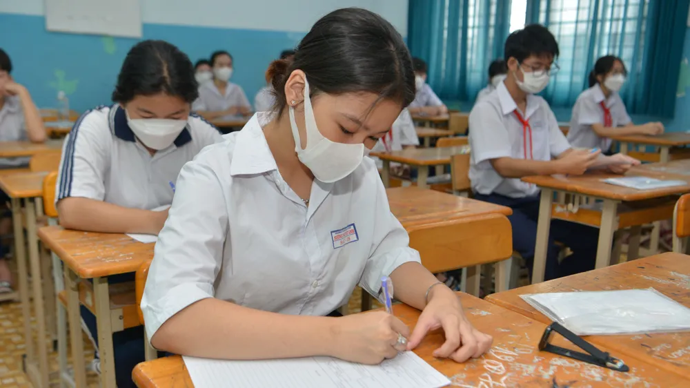 Sáng nay, các em bước vào môn thi đầu tiên là Ngữ văn với thời gian làm bài 120 phút. Theo lịch thi do Sở GD-ĐT TPHCM công bố, vào lúc 7 giờ 30, tất cả điểm thi mở túi đựng đề thi.