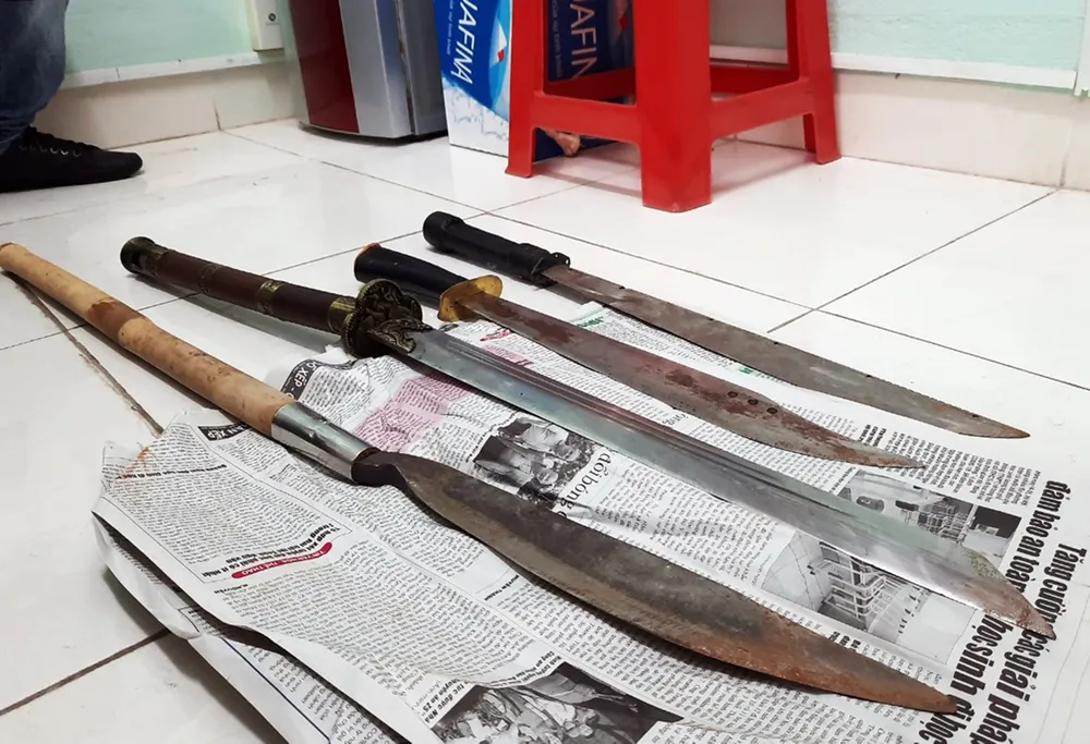 Hung khí các đối tượng sử dụng để gây ra vụ hỗn chiến, đâm chém nhau vào đêm 15-5 gồm: kiếm, phảng phát bờ, mác… (các đối tượng chủ động chuẩn bị để hẹn đâm chém nhau). Đặc biệt, căn cứ vào các lời khai cơ quan điều tra xác định có tiếng súng nổ trong vụ hỗn chiến nhưng không gây thương tích, chưa xác định đó là súng thật hay giả.