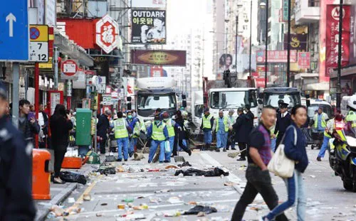 (SGGPO).- Khu Mong Kok ở Hồng Công (Trung Quốc), sáng nay, 9-2, trở lại yên tĩnh nhưng đường phố vẫn còn những dấu vết, đám cháy, vỉa hè bị xới, đủ loại mảnh vỡ vương vãi... sau một đêm biểu tình biến thành bạo loạn chống cảnh sát.