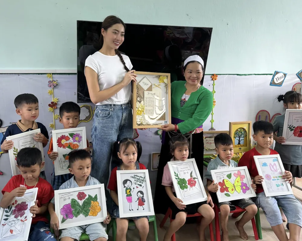 Đại diện chương trình, Lương Thùy Linh trao tặng quà cho thầy cô giáo và học sinh của trường. Cô cũng cùng học sinh làm những tấm thiệp ý nghĩa tặng thầy cô nhân dịp 20-11.