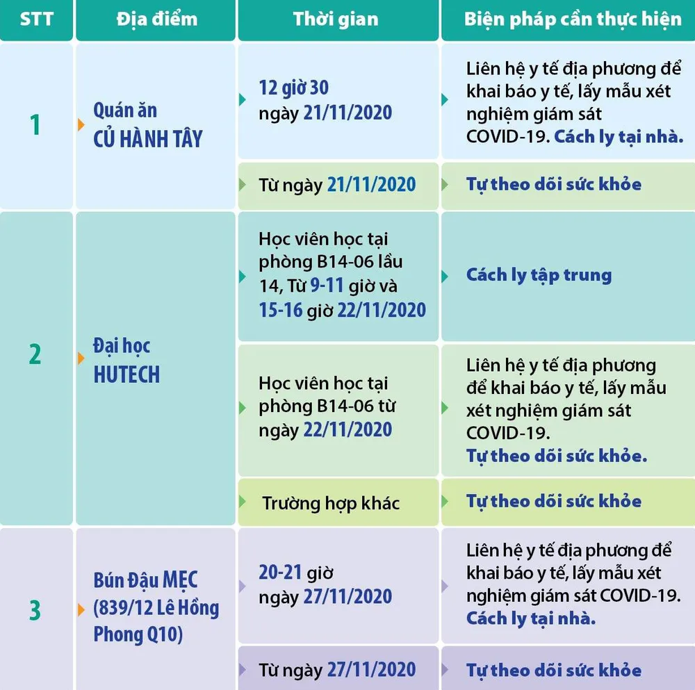 Tự cách ly tại nhà 14 ngày kể từ ngày cuối cùng đi đến các khu vực trên.
