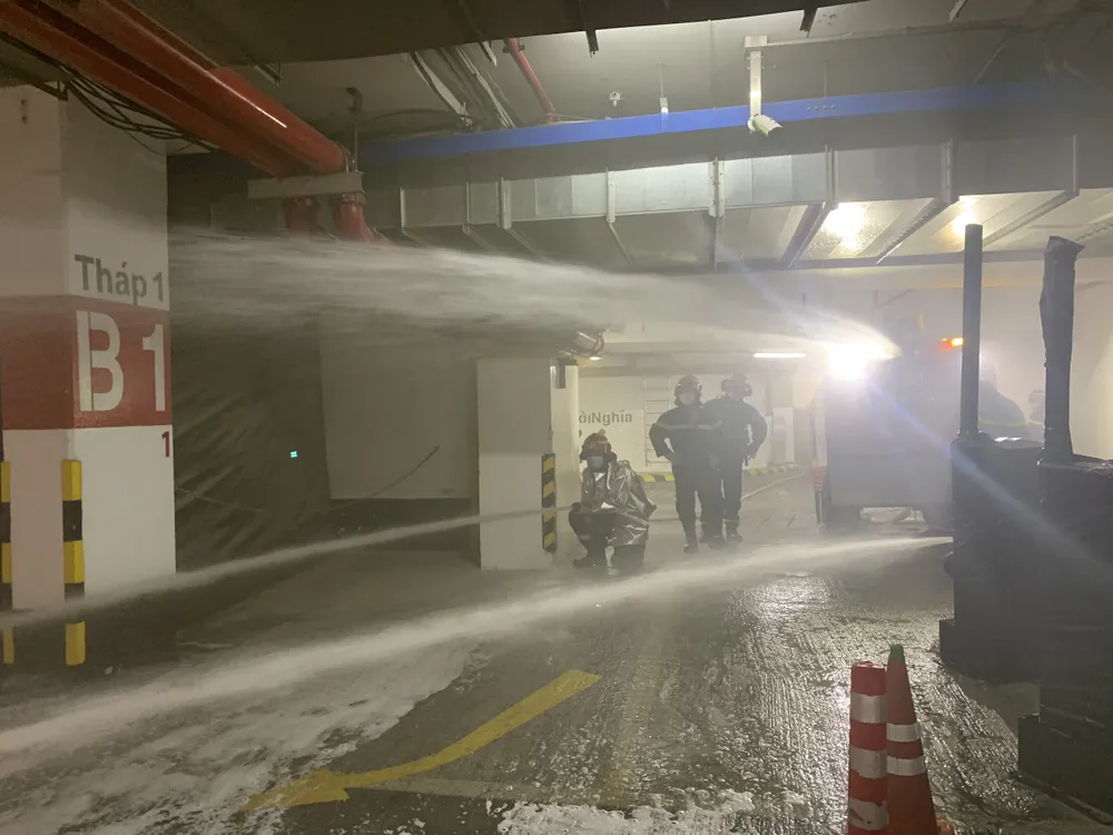 Phát hiện tại tầng hầm nơi xảy ra cháy có nhiều khói độc nên lực lượng đã di chuyển xe Robot ITM, máy thổi khói vào trong để chữa cháy, hút khói và tìm người mắc kẹt. Phía bên ngoài tòa nhà, lực lượng dùng xe thang để tiếp cận từ trên cao chữa cháy.