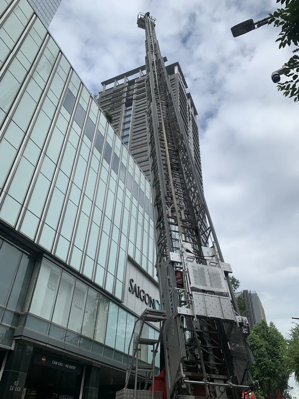 Lực lượng chữa cháy bên ngoài tòa nhà Saigon Centre. Ảnh: CHÍ THẠCH