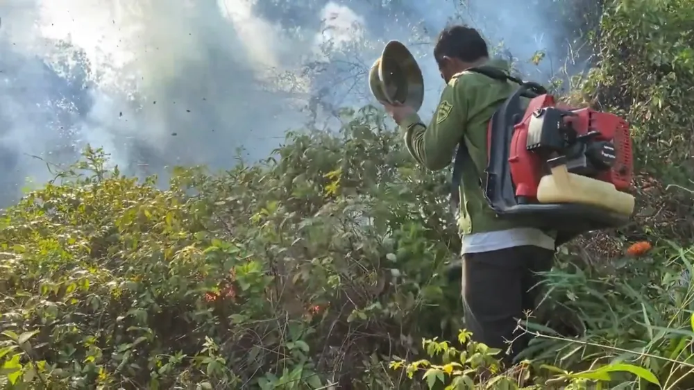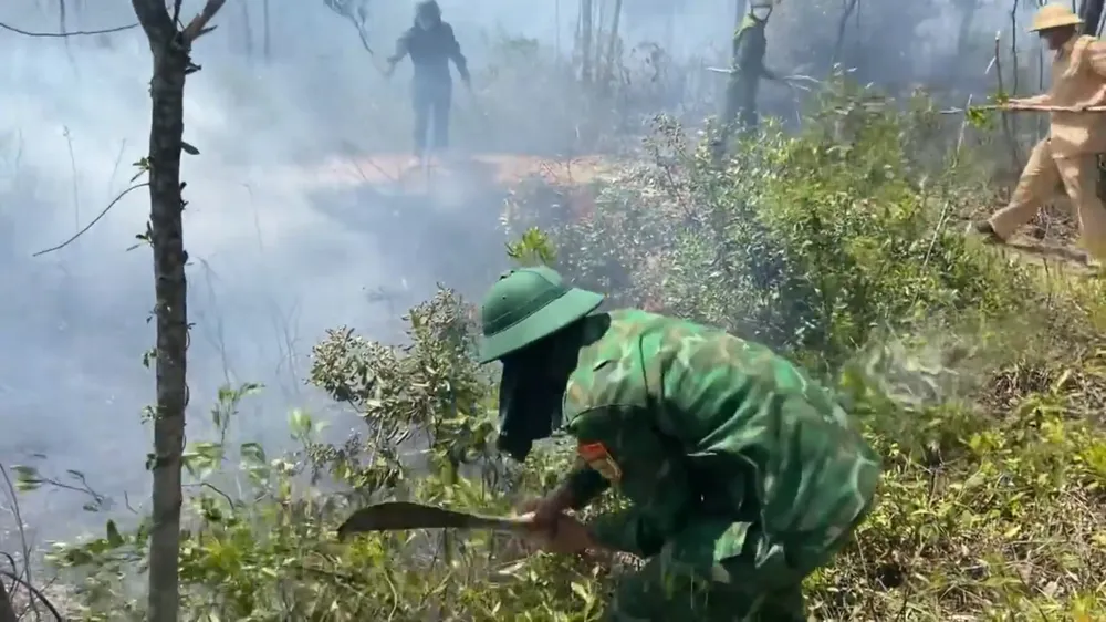Các lực lượng chức năng và người dân nỗ lực khống chế cháy rừng