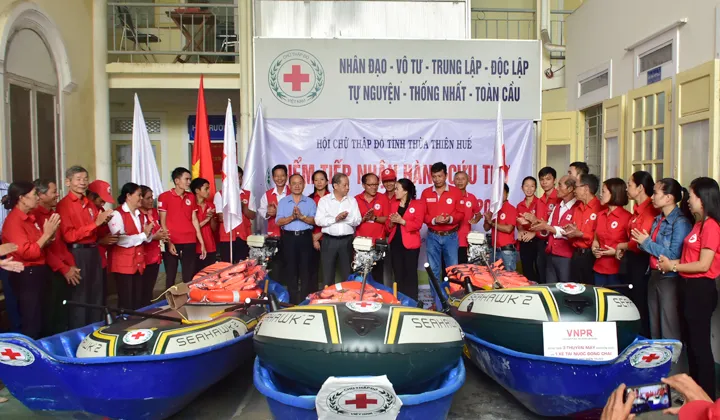 Trung ương Hội chữ thập đỏ Việt Nam trao thuyền máy, xuồng, phao cho các đơn vị ứng phó thiên tai của tỉnh Thừa Thiên – Huế