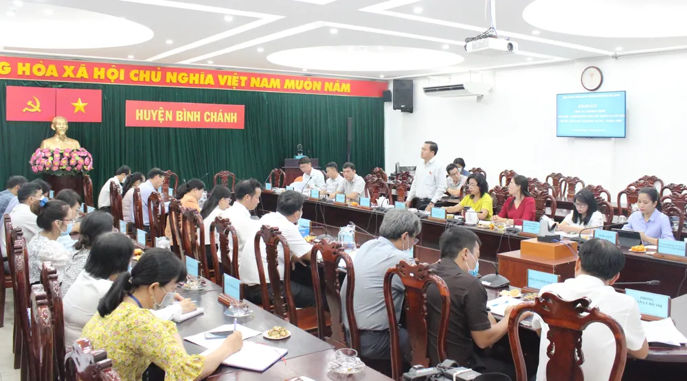 ĐB Cao Thanh Bình - trưởng đoàn khảo sát làm việc tại UBND huyện Bình Chánh. Ảnh: MAI HOA