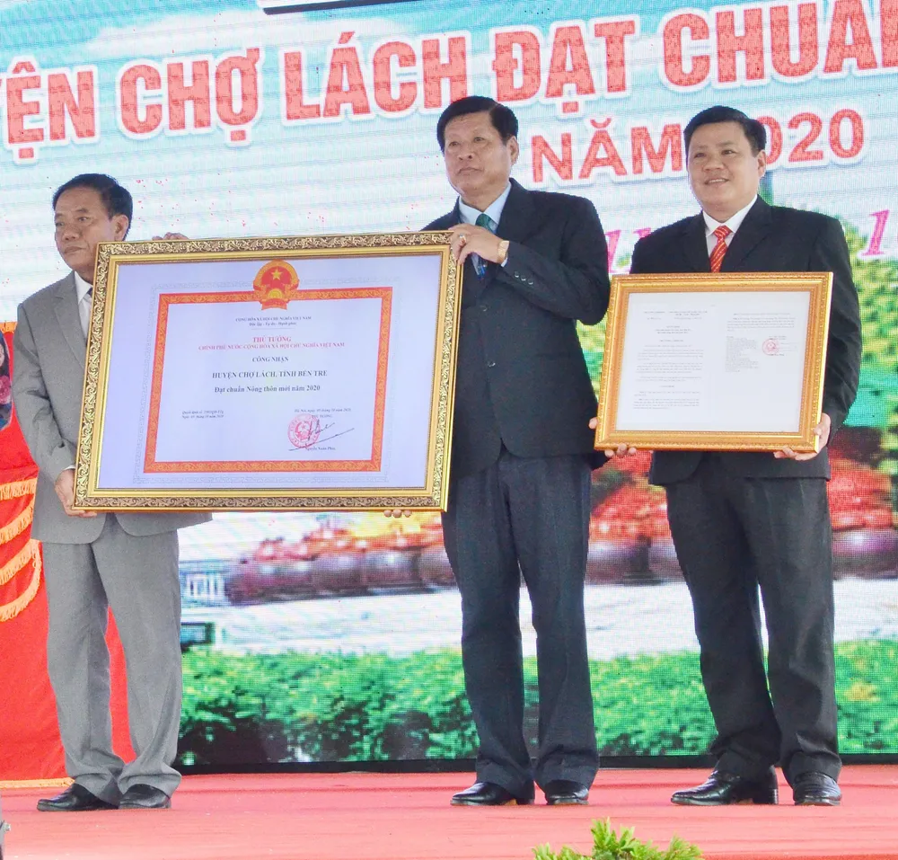 Ngày 11-10, UBND huyện Chợ Lách (tỉnh Bến Tre) tổ chức buổi lễ đón bằng công nhận đạt chuẩn nông thôn mới của Thủ tướng Chính phủ. Đây cũng là đơn vị cấp huyện đầu tiên của tỉnh Bến Tre hoàn thành nhiệm vụ này.