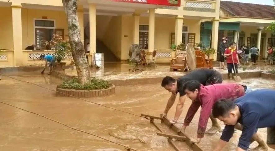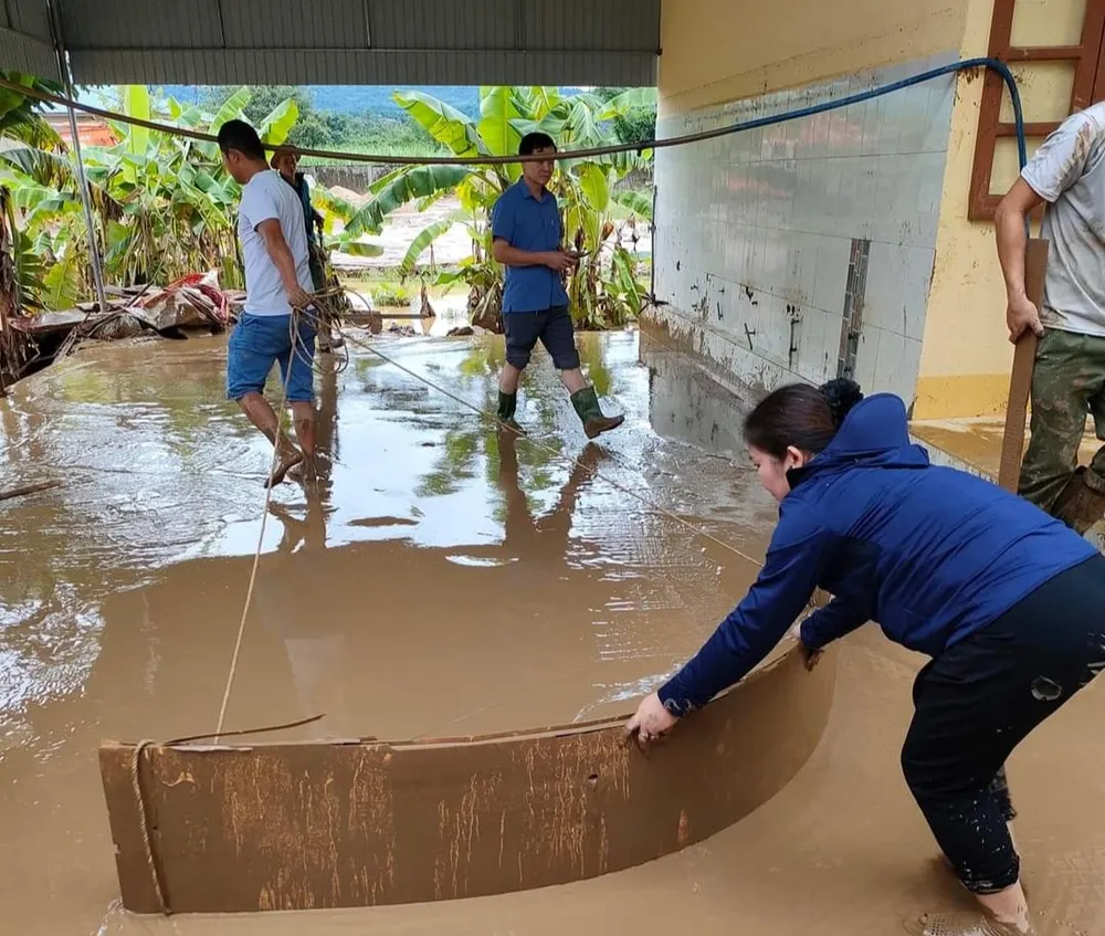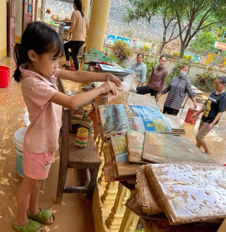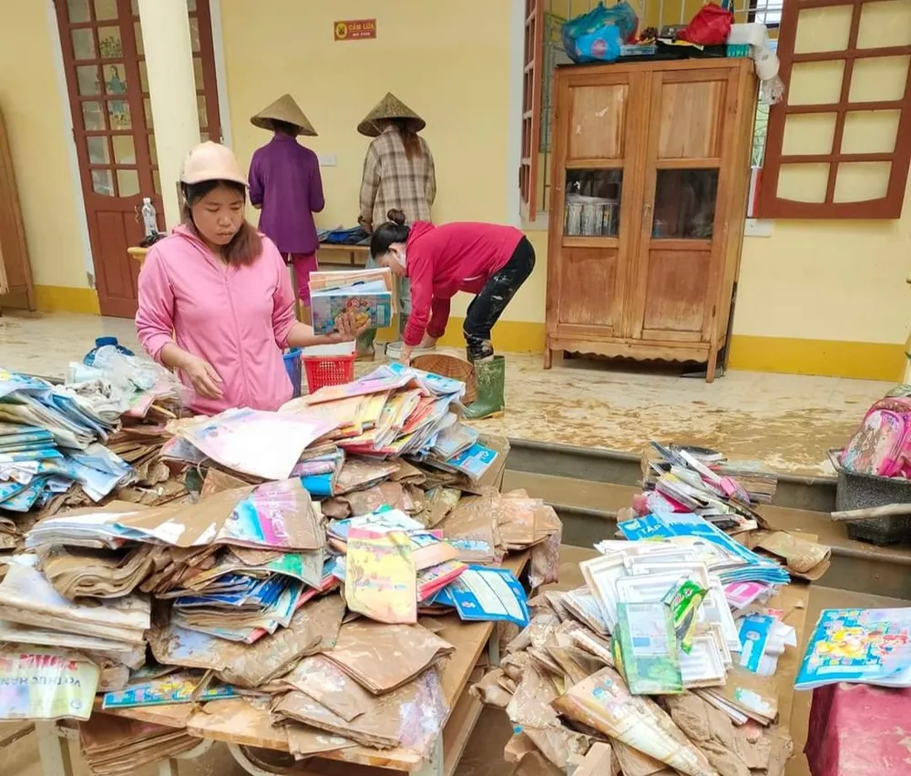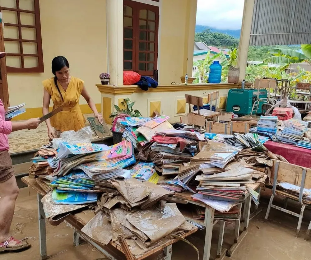 Mưa lũ đã khiến phần lớn sách vở, đồ dùng học tập của các em học sinh bị hư hỏng. Đặc biệt, sách vở và tư trang học tập của hơn 100 học sinh Trường THPT Quỳ Châu ở trọ tại các hộ dân ở thị trấn Tân Lạc bị mất, hư hỏng. Do lượng bùn đất tràn vào trường quá nhiều, chưa dọn dẹp kịp nên một số nơi vẫn chưa thể cho học sinh đến lớp.