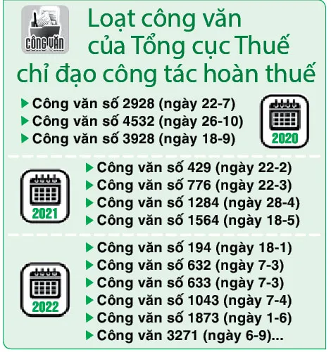 Tuy nhiên, thực tế thì những khó khăn hiện nay đều bắt nguồn từ những công văn chỉ đạo của Tổng cục Thuế yêu cầu các cục thuế địa phương phải thực thi các biện pháp hạn chế rủi ro hoàn thuế. Trong số đó có những yêu cầu khiến các cơ quan thừa hành mất rất nhiều thời gian, công sức mà vẫn khó hoàn thành đúng hạn.