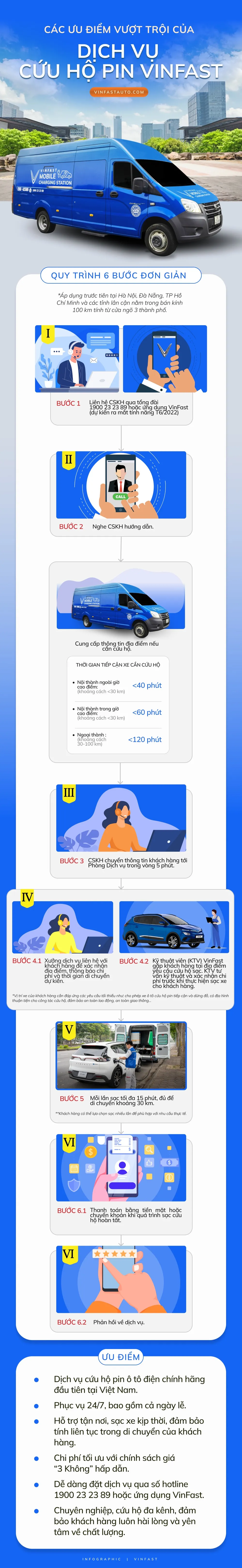 Infographic: 6 bước đơn giản để sử dụng dịch vụ cứu hộ pin ô tô điện VinFast