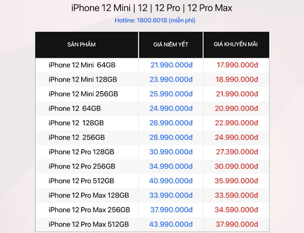 Theo ghi nhận tại Di Động Việt - Đại lý ủy quyền chính thức của Apple tại Việt Nam (AAR), iPhone 12 và iPhone 12 mini đã đồng loạt được giảm giá sâu đến 2 triệu đồng so với những ngày đầu mở bán. Hiện tại, mức giá khuyến mãi của iPhone 12 mini từ 17,99 triệu đồng, iPhone 12 từ 20,99 triệu đồng cho phiên bản 64GB. iPhone 12 mini 128GB và 256GB có giá lần lượt 18,99 triệu đồng và 21,99 triệu đồng. iPhone 12 128GB là 22,99 triệu đồng, bản 256GB có giá 24,99 triệu đồng. Bên cạnh đó là các ưu đãi như trả góp 0% lãi suất, trade-in thu cũ đổi mới tiết kiệm đến 21 triệu đồng, tặng 3 triệu đồng khi mua robot hút bụi. |