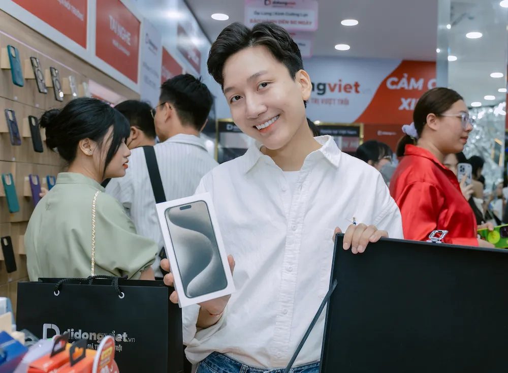 Di Động Việt còn là một trong những đơn vị mở bán iPhone 15 series sớm nhất tại Việt Nam, thu hút sự quan tâm và tham gia từ đông đảo khách hàng và các nghệ sĩ, người nổi tiếng, như nhạc sĩ Huy Tuấn, ca sĩ Trung Quân, nhạc sĩ Dương Khắc Linh, ca sĩ Đăng Khôi, diễn viên Quỳnh Nga, hoa hậu Ngọc Hân…