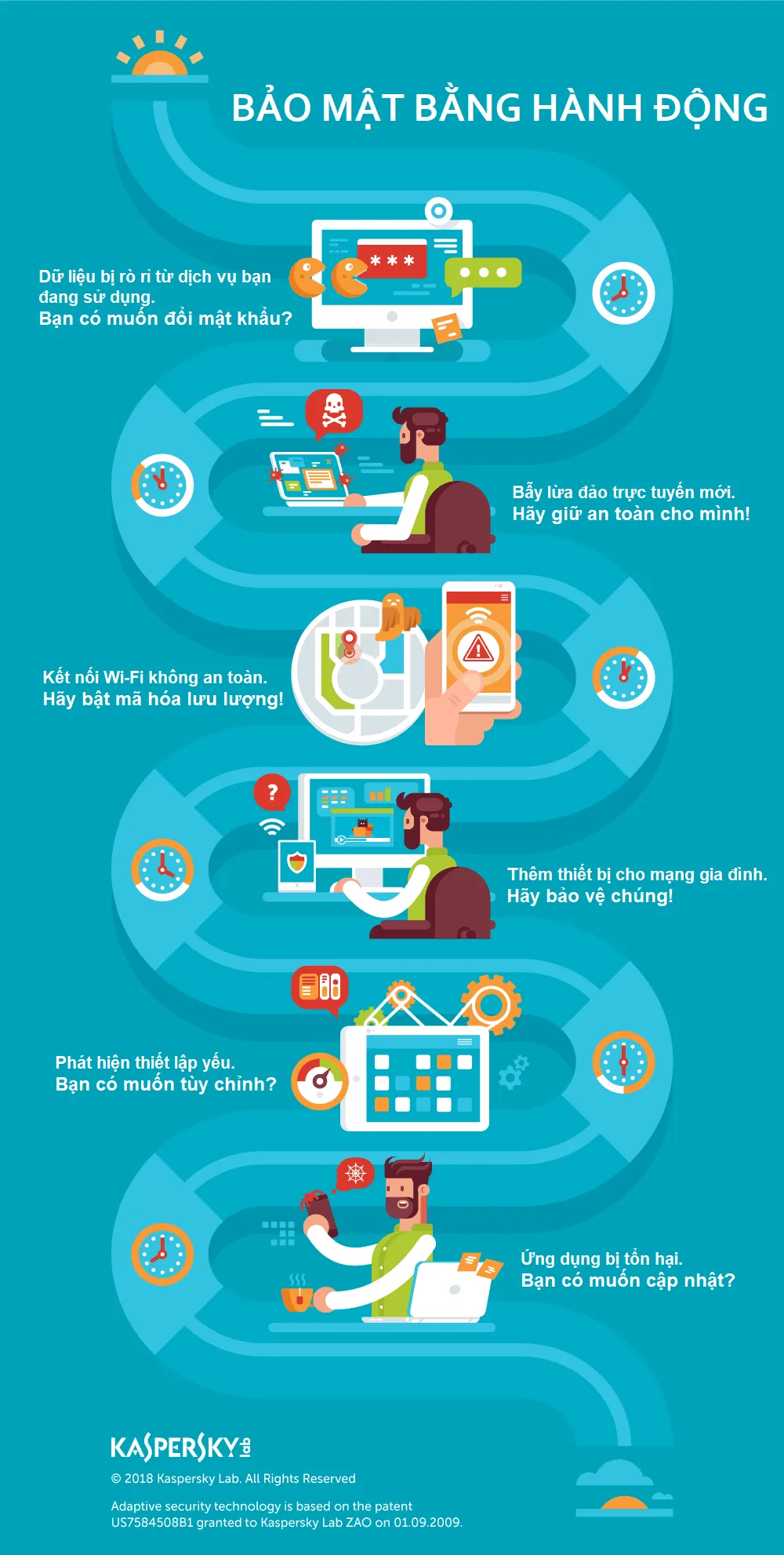 Bà Võ Dương Tú Diễm, Territory Channel Manager – Vietnam, Kaspersky Lab SEA chia sẻ: “Hãy tưởng tượng rằng bạn đang cần gửi đi thông tin quan trọng và bạn đến quán cà phê gần nhất, kết nối với Wi-Fi miễn phí nhưng kết nối này lại không an toàn. Hoặc, ai đó truy cập mạng gia đình của bạn và đang bí mật theo dõi tất cả các hoạt động trực tuyến của bạn. Hay bạn lo lắng về việc liệu con bạn có lên mạng an toàn hay không. Và còn nhiều những tình huống khác nữa đang đe dọa cuộc sống bạn mỗi ngày. Với Kaspersky Lab, các tình huống này rất khó xảy ra vì giải pháp của chúng tôi sẽ bảo vệ người dùng 24/7, trong mọi điều kiện và tình huống”. |