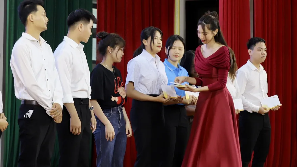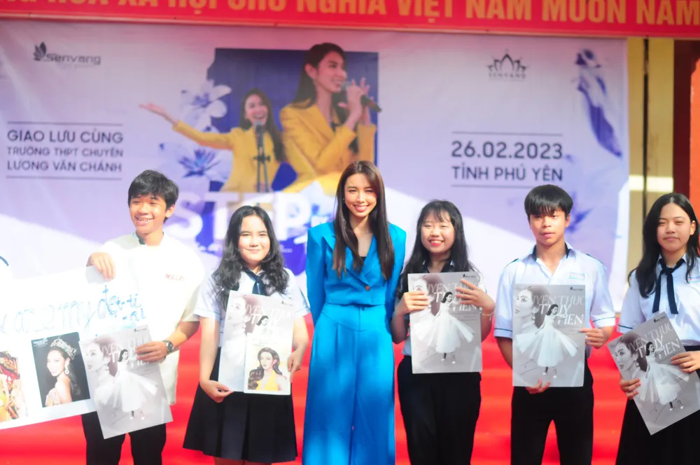 Tại mỗi trường, Thùy Tiên đã dành thời gian giao lưu cũng như chia sẻ những câu chuyện về bài học, kinh nghiệm của bản thân để truyền cảm hứng cho các bạn trẻ.