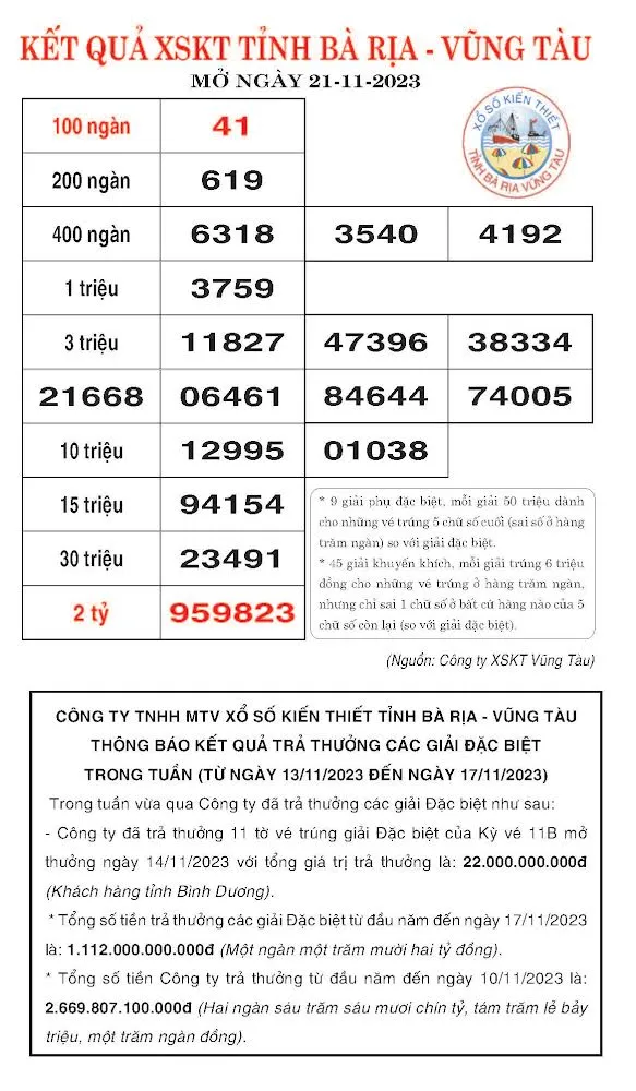 1. Kết quả SXKT Bến Tre, Bà Rịa-Vũng Tàu ngày 21/11/2023 ảnh 1