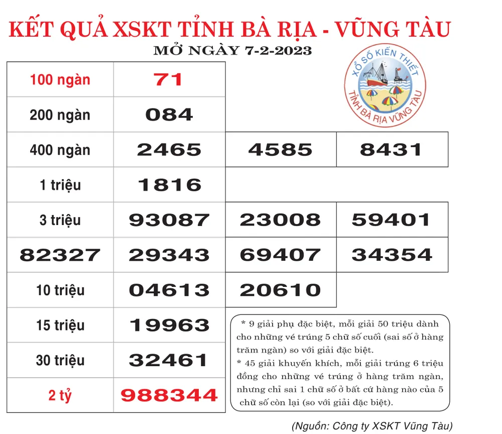 CÔNG TY TNHH MTV XỔ SỐ KIẾN THIẾT TỈNH BÀ RỊA – VŨNG TÀU THÔNG BÁO KẾT QUẢ TRẢ THƯỞNG