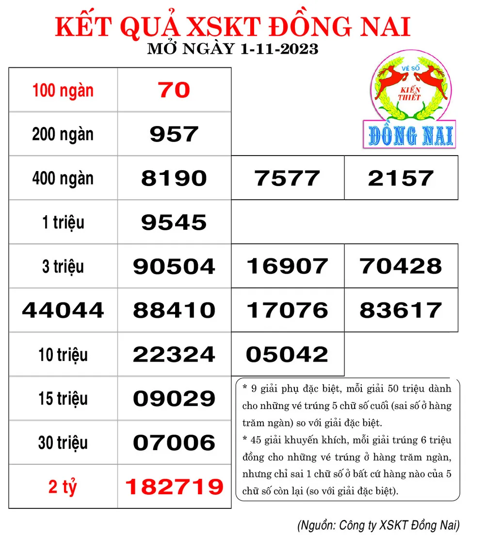 Kết quả XSKT tỉnh Đồng Nai ngày 1-11-2023