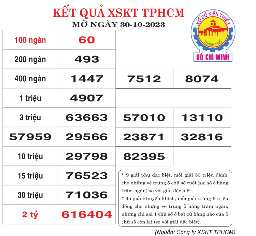 Kết quả XSKT TPHCM ngày 30-10-2023