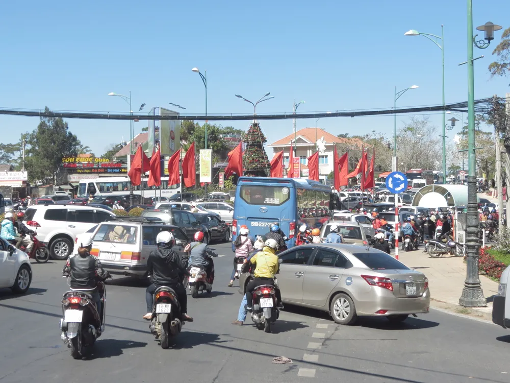 Chưa tết nào đi lại ở Đà Lạt khó khăn như năm nay do lượng xe cộ quá đông, nhất là xe ô tô du lịch từ 4 - 7 chỗ tăng mạnh. Các ngả đường từ trung tâm ra đến hồ Tuyền Lâm đều bị kẹt xe cục bộ hay ùn ứ thành hàng dài.