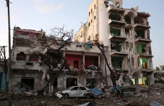 Khách sạn Ambassador ở thủ đô Mogadishu, Somalia, tan hoang sau vụ tấn công ngày 1-6-2016. Ảnh: REUTERS