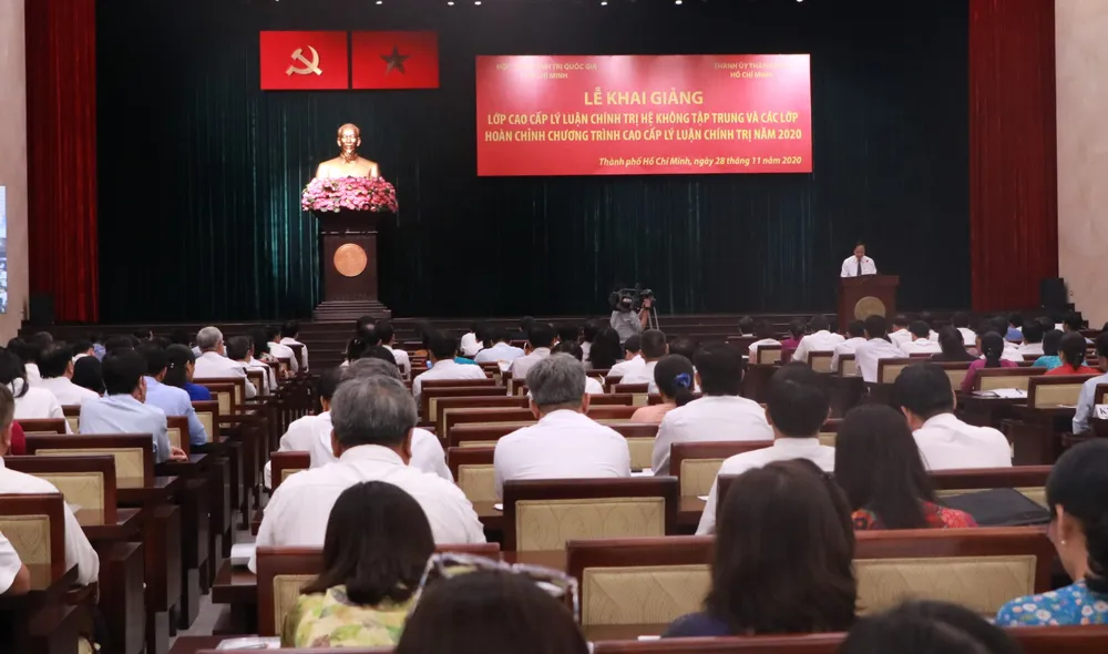 Chiều 28-11, Học viện Chính trị quốc gia Hồ Chí Minh phối hợp với Thành ủy TPHCM tổ chức lễ khai giảng lớp cao cấp lý luận chính trị hệ không tập trung K71.B03 và 4 lớp Hoàn chỉnh chương trình cao cấp lý luận chính trị năm 2020.