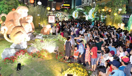 (SGGP).- Tối 5-2 (27 tháng Chạp), Đường hoa Nguyễn Huệ Tết Bính Thân 2016 với chủ đề “Thành phố Hồ Chí Minh - Sáng tạo - Hội nhập - Phát triển” đã chính thức khai mạc. Theo thông lệ nhiều năm qua, việc đường hoa đón du khách cũng được xem là dấu mốc báo hiệu TPHCM chính thức bước vào hàng loạt sự kiện lễ hội đón chào năm mới truyền thống.