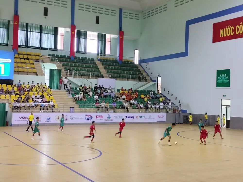 Sau lễ khai mạc, trận đấu đầu tiên của giải giữa đội bóng U11 TP Biên Hoà gặp U11 TP Long Khánh.