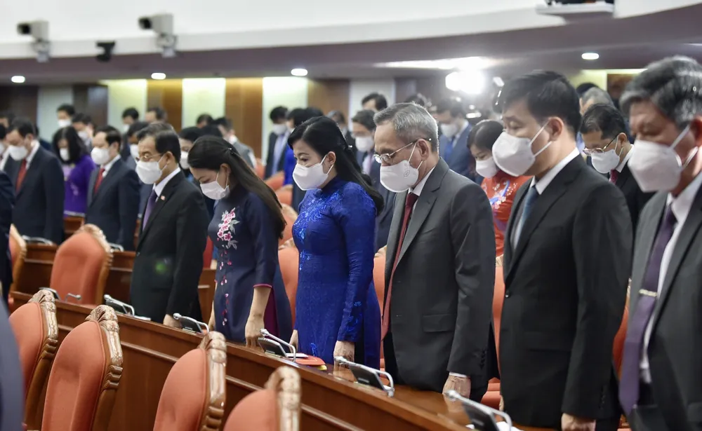 Hội nghị Trung ương 4 dành một phút tưởng niệm đồng bào tử vong; cán bộ, chiến sĩ hy sinh trong đại dịch Covid-19. Ảnh: VIẾT CHUNG