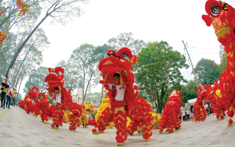 25 đoàn mang đến công chúng 18 màn trình diễn Lân địa bửu, 14 tiết mục biểu diễn Lân Sư lên mai hoa thung. Liên hoan còn có các hoạt động giao lưu nghệ nhân làm đầu lân, trưng bày sản phẩm về nghệ thuật lân sư rồng, không gian Lương y nghề võ, giới thiệu các bài thuốc gia truyền hữu ích trong đời sống hàng ngày và ẩm thực đặc trưng của quận 5. Điểm nhấn của liên hoan là việc xác lập kỷ lục Việt Nam về màn đồng diễn múa lân với sự tham gia của 108 con lân tạo thành quốc kỳ Việt Nam (ảnh).