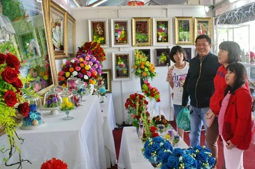 Khách thăm quan gian hàng tại phiên chợ rau, hoa.