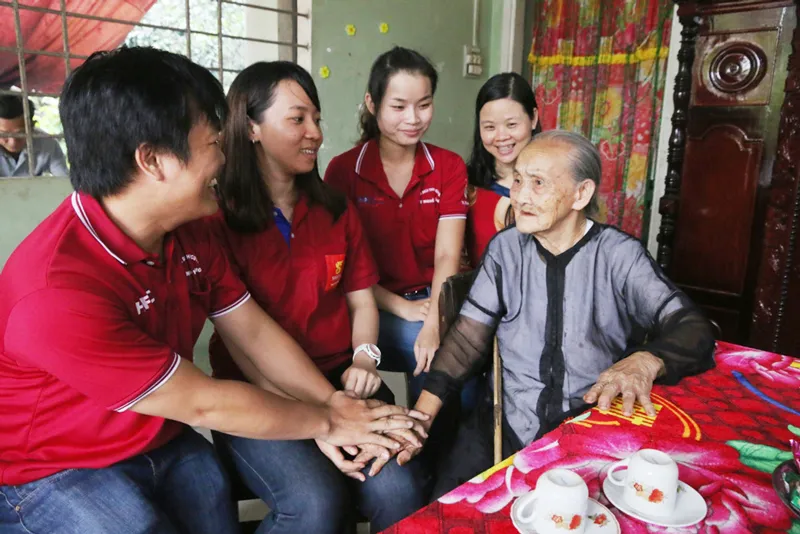 Các chiến sĩ tình nguyện kỳ nghỉ hồng thăm mẹ Việt Nam anh hùng Bùi Thị Nà, 87 tuổi